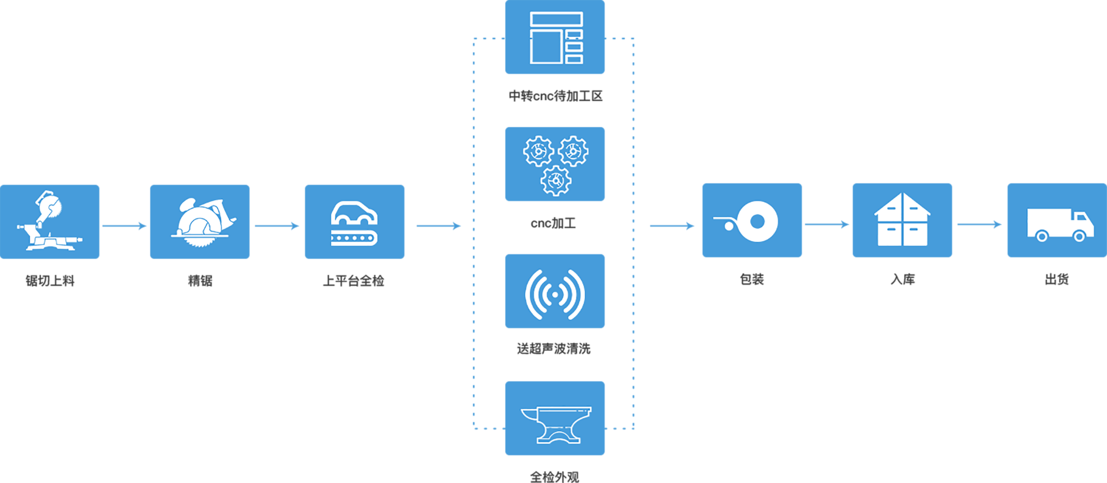 Guangdong Jianmei New Metal Technology Co., Ltd. has a complete set of production processes and mechanical equipment, such as sawing (precision sawing), CNC machining, cleaning, assembly, welding, packaging (riveting), etc. It has a complete whole process production chain of aluminum alloy parts and a complete auxiliary process, the process flow and production workshop of the whole process, and the main product varieties are as follows: aluminum alloy auto parts, industrial building materials, communication electronics, etc.